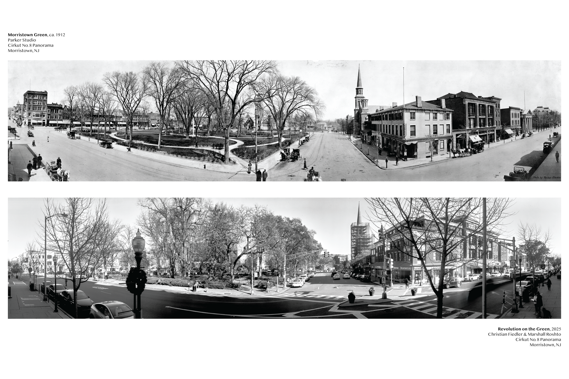 Fine art print of "Revolution on the Green", a diptych of the ca.1910 Parker Studio image of the Green along with a modern reproduction taken on the same Kodak Cirkut No. 8 camera in 2025.